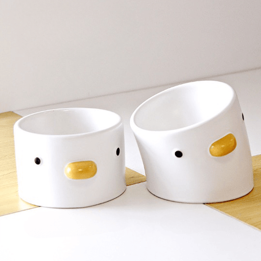 Chirpy Chick Tilted Ceramic Cat Feeding Bowl