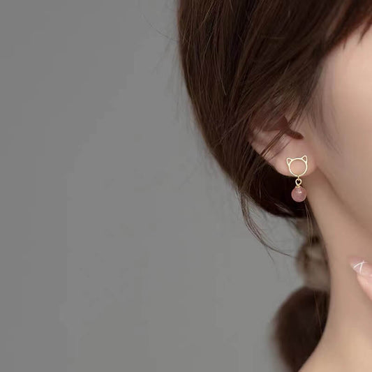 Sweetie Cat Strawberry Quartz Earrings