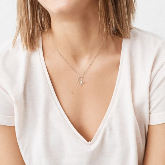 Cat Sitting on the Moon Necklace in 925 Sterling Silver