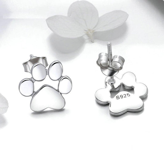 Cute Paw Print Stud Earrings in 925 Sterling Silver