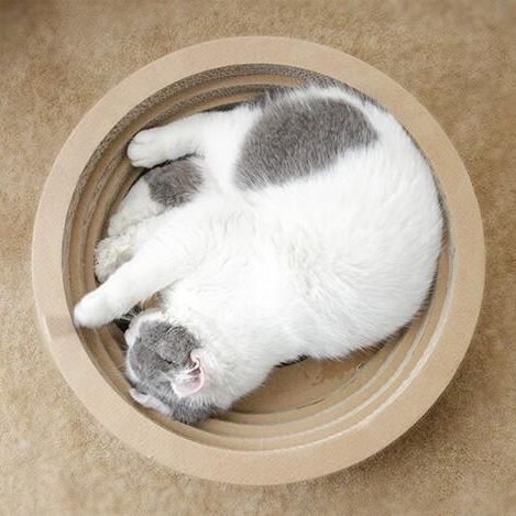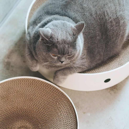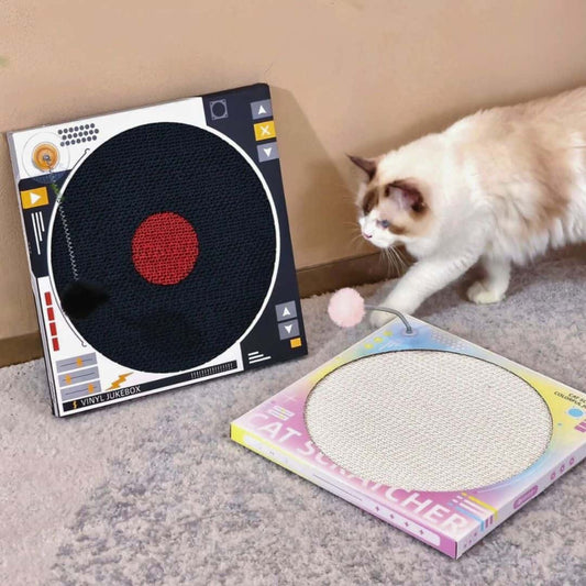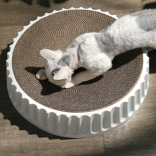 Modern Retro Round Cardboard Cat Scratcher with Ball