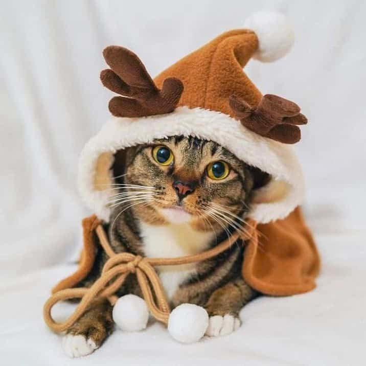 This reindeer costume offers a complete holiday look with a reindeer headpiece and a warm Christmas cloak that drapes comfortably over your cat’s body. It’s the perfect way to transform your feline into a holiday icon.